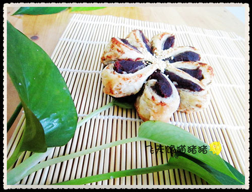 及以下步骤:锡纸上涂一点油。 将四个小饼放在锡纸上,中间撒上一些白芝麻做装饰,然后烤箱预热到180度,然后放在烤箱中层上下火烤25分钟。 将飞饼皮放在室温下软化。 在飞饼上面放上适量的豆沙馅。 将豆沙馅包在里面,揉成圆形,再用手拍成小圆饼状。 将小饼用刀子切成八份,中间不要切断。 将每一个花片从一个方向向上翻起。 烤盘上放上锡纸。 锡纸上涂一点油。 将四个小饼放在锡纸上,中间撒上一些白芝麻做装饰,然后烤箱预热到180度,然后放在烤箱中层上下火烤25分钟。