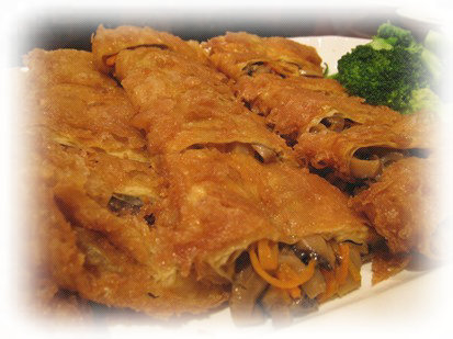 及以下步骤:把包好的蔬菜素鹅平放盘子里,封口朝下。 取出平底锅,倒入适量的油,烧制七八成热,把包好的素鹅封口朝下放进锅内,煎至金黄色,翻个面在煎至金黄,即可取出。一一煎至。 把煎好的素鹅,待冷却后,却成小段,装盘即可。 把冬笋切丝,锅内加水烧开,加入适量的盐,煮熟待用。 锅内倒入油,烧热后先把胡萝卜丝煸炒,然后放入香菇丝和金针菇段煸炒,最后放入烫熟的冬笋丝一起煸炒至熟,加入调味料调味。 把洗净的锅里倒入适量的清水,烧制温烫,在锅里加入一勺老抽(用于豆腐衣上色)和一小勺盐,给酱油汤调味。 把豆腐衣平摊在砧板上,切去四边,把豆腐衣切成正方形,放在旁边,先拿起2张豆腐衣的两端,一起放入酱油汤里烫至软化,拎起滴干水,平摊在砧板上;(烫一次包一个) 把包好的蔬菜素鹅平放盘子里,封口朝下。 取出平底锅,倒入适量的油,烧制七八成热,把包好的素鹅封口朝下放进锅内,煎至金黄色,翻个面在煎至金黄,即可取出。一一煎至。 把煎好的素鹅,待冷却后,却成小段,装盘即可。