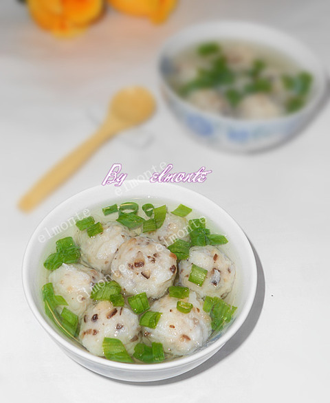 及以下步骤:用大小汤匙把鱼泥团成丸子。 锅放水烧开,放入1/2茶匙的盐,把鱼丸放入。 烧约5分钟,至鱼丸全部浮起即可。 鱼丸鲜香,q而弹牙。 把香菇末放入鱼泥里。 顺方向搅拌均匀。 用大小汤匙把鱼泥团成丸子。 锅放水烧开,放入1/2茶匙的盐,把鱼丸放入。 烧约5分钟,至鱼丸全部浮起即可。 鱼丸鲜香,q而弹牙。