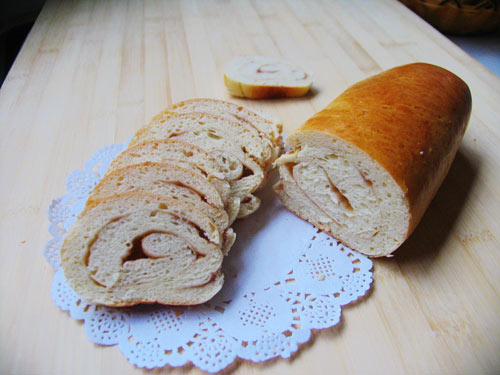 又下雨了,凉爽无比。这样的天气,呆在家里,做些吃的,一家人围坐在一起,谈笑风生,有吃有喝,惬意! 因为是开始做面包,一切都处于边做边学习的阶段,真的是凭感觉自己摸索着完成了这款面包。烤出来的时候一切都还好,唯一不足的是盐还是稍稍有点多,几乎快成咸面包了。 欣慰的是家人都比较给面子,几乎都给消灭掉了。