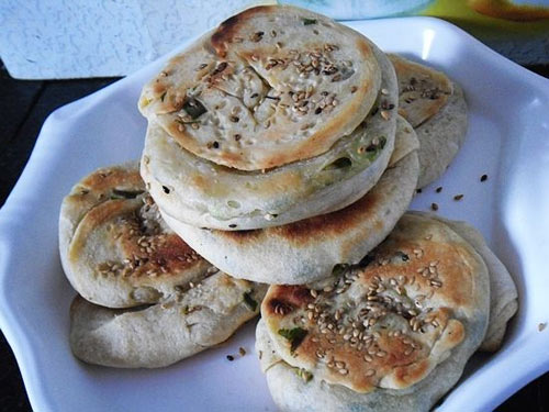 及以下步骤:卷起来后,稍稍拧劲。 盘起按扁,轻轻按成饼的厚度,蘸匀芝麻。即成毛坯,依次做完。 放入平底锅中,小火烙制。烙时要盖盖。 烙至两面金黄即可。 出锅装盘。 卷起来后,稍稍拧劲。 盘起按扁,轻轻按成饼的厚度,蘸匀芝麻。即成毛坯,依次做完。 放入平底锅中,小火烙制。烙时要盖盖。 烙至两面金黄即可。 出锅装盘。