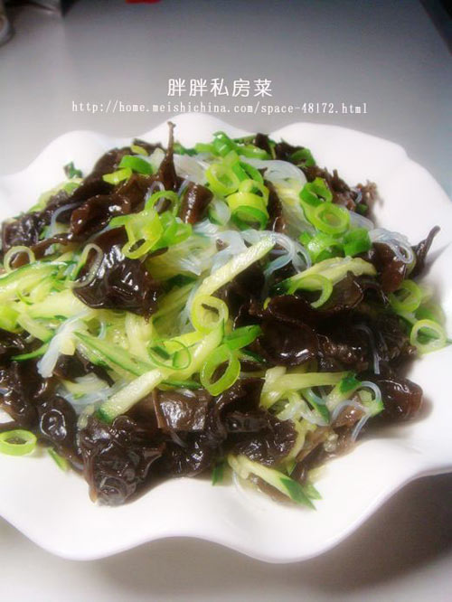 及以下步骤:捞出来过一下凉开水,滤干水分。 黄瓜丝挤去盐水和粉丝放到一起。 再放入木耳丝。 添加香油,撒上味精,放入余下的盐,拌匀即可。 盛入盘中,即可食用。 捞出来过一下凉开水,滤干水分。 黄瓜丝挤去盐水和粉丝放到一起。 再放入木耳丝。 添加香油,撒上味精,放入余下的盐,拌匀即可。 盛入盘中,即可食用。