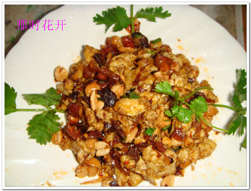 及以下步骤:加入葱花炒匀即可。 准备的食材。 鸡蛋打散,花生捻成花生碎,葱花切好待用。 准备的食材。 鸡蛋打散,花生捻成花生碎,葱花切好待用。 热油滑散鸡蛋液。 鸡蛋扒一边,下豆瓣酱炒香。 一起翻炒入味。 倒入花生碎。 加入葱花炒匀即可。