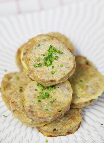 4、加热的平底锅里抹食用油,放入丸子, 用中火正面煎3分钟,再翻过来背面煎2分钟左右。配醋酱油上桌。