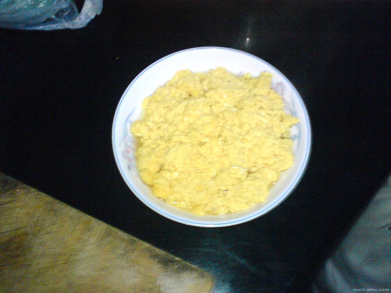 7、翻炒至半凝结糊状即可。