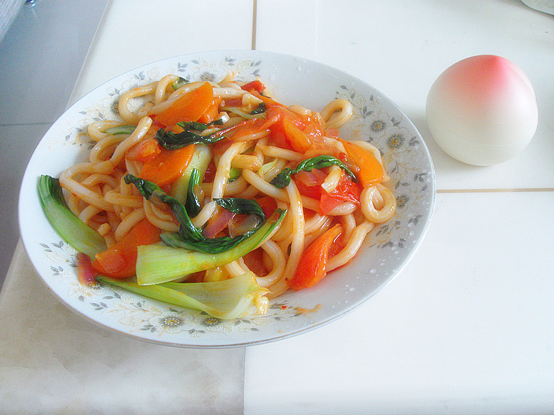 及以下步骤:原材料就这些,很简单,蔬菜切好备用 锅中放油,依次放入洋葱、蒜末、胡萝卜、番茄、油菜进行翻炒,其实顺序没有严格控制,按照易熟程度添加就好 原材料就这些,很简单,蔬菜切好备用 锅中放油,依次放入洋葱、蒜末、胡萝卜、番茄、油菜进行翻炒,其实顺序没有严格控制,按照易熟程度添加就好 原材料就这些,很简单,蔬菜切好备用 锅中放油,依次放入洋葱、蒜末、胡萝卜、番茄、油菜进行翻炒,其实顺序没有严格控制,按照易熟程度添加就好 原材料就这些,很简单,蔬菜切好备用 锅中放油,依次放入洋葱、蒜末、胡萝卜、番茄、油菜进行翻炒,其实顺序没有严格控制,按照易熟程度添加就好 等到锅中的蔬菜变色,加入适量的食盐(注意不要太多),加入乌冬面,此时不要立刻翻炒,让乌冬面整体受热,很容易就开了 加入调味料(蚝油及酸辣酱),按个人口味哦~略微翻炒即可