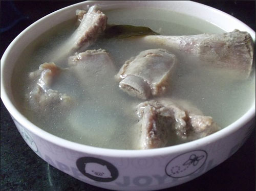 5、灼过的猪骨冲洗去骨碎,杂质。