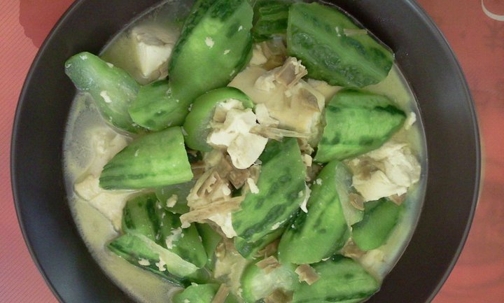 注意事項: 1.水不要加太多, 豆腐煮時也會出水分. 2. 絲瓜皮不用刨的太清爽, 要留一點, 所以要用刷子刷干淨. 留點皮可以保持絲瓜的形狀, 也是身體所需要的綠色纖維.3.豆腐最好買新鮮的板豆腐.