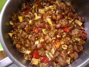 这里除了干海椒和十三香,酸海椒以外的都在之前要抹在兔丁上。川菜的一个主要特点我觉得是依据自己的口味准备食材的分量。没有很明确的规定,比如花椒,如果吃的不麻的朋友可以少放点。其实这里面的材料最主要的是白扣,香叶和茴香,酱油我喜欢用海天的红烧酱油,因为可以着色,这样做好的辣子兔会很好看。其实这款也可以叫甜酸兔丁,因为到最后在放两样东西感觉就完全不一样了,到时再说吧。 ps:这是本人第一次发表菜谱,有做的不好的地方请多包涵,到时边做边放图。