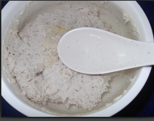 4、剁碎的白糖参,瘦肉加适量清水。