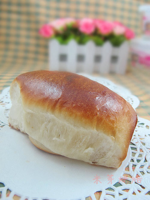 及以下步骤:室温下进行第二次发酵30分钟。 用手指戳一下不反弹就可以,哈哈,一不小心多戳了几个洞,戳洞洞真好玩…… 排气分割成6等份,松弛20分钟。 按扁。 取一份,擀开。 由上而下卷起来。 排入烤盘。 继续发酵至两倍大。 烤箱150度预热(原方子是180度)10分钟,在烤箱底部放一碗水。入烤箱前,给面包表面刷一层蛋液。 不要忘记喷水,再送入烤箱,烤20分钟,烤10分钟时再喷一次水。