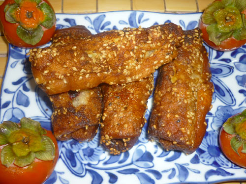 蛋液要裹均匀,口要封好,炸得时候就不会爆裂。