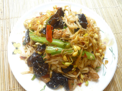 五花肉(300克) / 四季豆(50克) / 豆芽(50克) / 湿面条(600克)