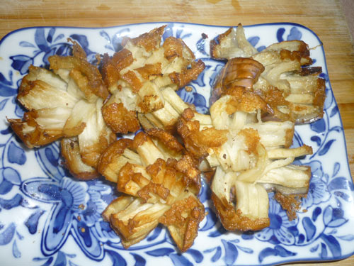 7、将浓汁浇在茄花上,香气浓郁地道,用筷子夹起一块儿,有菊花的摸样呢。