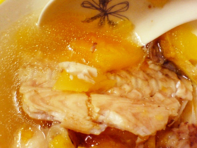 及以下步骤:鱼尾骨切段,去血水(略图)。 木瓜削皮、切片。 鱼尾骨切段,去血水(略图)。 木瓜削皮、切片。 鱼尾骨切段,去血水(略图)。 木瓜削皮、切片。 鱼尾骨切段,去血水(略图)。 全部材料放到一块,加入高汤、生姜。等到炖开的时候再放盐(个人不喜欢放油)。 这个时候汤变成奶白色就放盐。 一个清甜美味的汤就完成了。