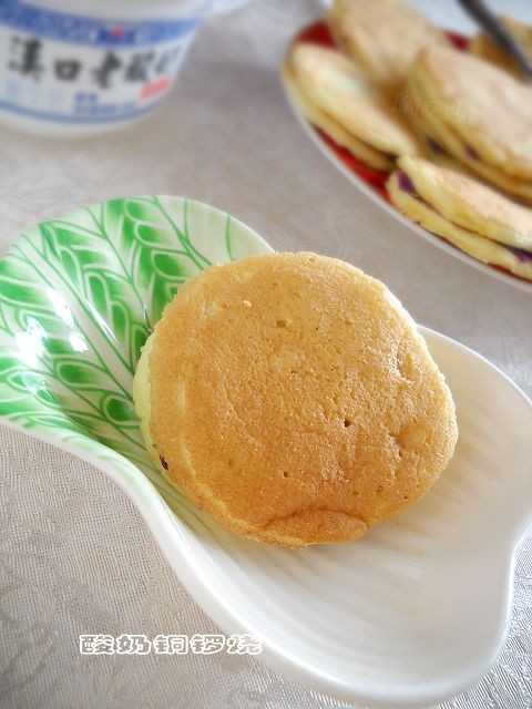 第一次学做的铜锣烧。 正好那天做了2l酸奶,还发愁喝不完呢。 想着做铜锣烧,干脆就用酸奶做出来尝尝。成品味道还不错,甜中略带酸奶味,夹上紫薯馅,醇香绵 甜,味道还真不错······
