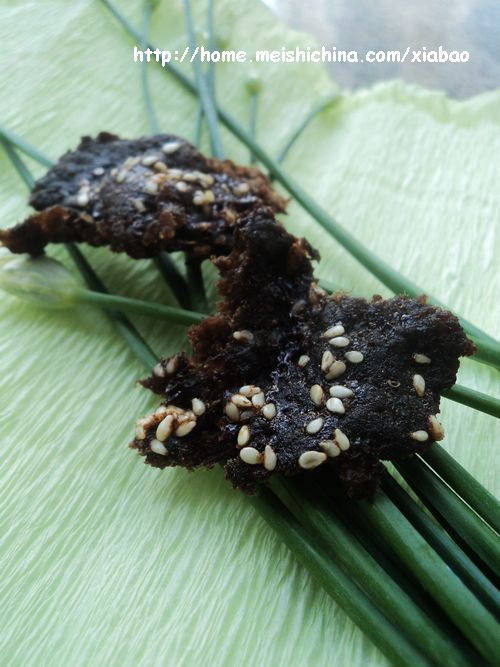 及以下步骤:再倒入绞肉机中,加适量水打成泥。 准备一张锡纸和一根擀面棍。 锡纸刷上一层油,取适量牛肉铺好,擀成片,放到烤盘中。 芝麻洗净无沙粒,撒均匀,再刷少许油。 180度烤25分钟,期间翻面,两次刷上蜂蜜,烤制到表面冒油冒小气泡的时候基本完全好了,牛肉干的干湿程度和口感那就自己掌握了。 再倒入绞肉机中,加适量水打成泥。 准备一张锡纸和一根擀面棍。 锡纸刷上一层油,取适量牛肉铺好,擀成片,放到烤盘中。 芝麻洗净无沙粒,撒均匀,再刷少许油。 180度烤25分钟,期间翻面,两次刷上蜂蜜,烤制到表面冒油冒小气泡的时候基本完全好了,牛肉干的干湿程度和口感那就自己掌握了。