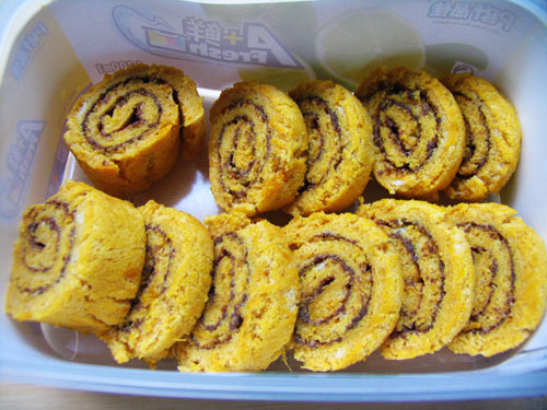 1、这款蛋糕卷,因为芒果量比较多,稍稍有点湿软,但正好合了宝贝的胃口,软软糯糯,非常适合她那小小的牙齿来吃。