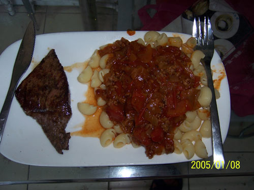 及以下步骤:牛肉末变色炒熟。 牛肉末熟后加入番茄丁。 此事另一锅煮水 开水下意大利面。 同时 炒末的锅内加入番茄酱。 慢熬至都烂糊了。 平底锅煎牛排 这牛排有点难看,小火 ,保留其中的汁水 不用煎太老了,两面侧面都煎一下。 面也煮好了 过夏凉水 沥干放盘子内,浇上熬制的意大利面酱,加上一块牛排,一份比宜家意大利面还好吃的 意大利面 +牛排就做好了 ,记得用刀叉吃哦。 慢熬至都烂糊了。 平底锅煎牛排 这牛排有点难看,小火 ,保留其中的汁水 不用煎太老了,两面侧面都煎一下。 面也煮好了 过夏凉水 沥干放盘子内,浇上熬制的意大利面酱,加上一块牛排,一份比宜家意大利面还好吃的 意大利面 +牛排就做好了 ,记得用刀叉吃哦。