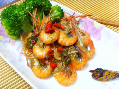 每次做完菜,都为起名字为难,想到紫薇炒个菠菜都起了个红嘴绿鹦哥,自叹墨水不够用。头都想大啦!也只不过是a炒b,c烧d一般的套路。 决心,星期六买来大头虾补补脑子,吃完后顿时来了灵感,虽说名字有无厘头之嫌,凑合着能用,也算是很切合吧~~ 口味:鲜、香、辣 营养:钙铁锌硒维生素,都很全!