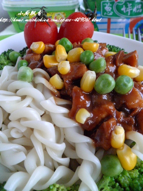 单位请来了一位老外,教大家学习外语、练习口语,为参加省局的一个英语竞赛做准备,我也有幸参加了学习。在和老外练习口语交谈时他问我周末干什么了,我就说在做饭,做炸酱面!他很感兴趣也很喜欢,说这是中国的美食,很好吃!然后又摇头说:他总是不会用筷子!吃个面条老是吃不到嘴里。。。 我们还玩笑地说以后请他吃饭就吃炸酱面! 下课后,我却突发奇想,何不用老外喜欢的螺旋粉(意粉、意面)来当面,做道螺旋粉的炸酱面呢! 一直以来,我家买的螺旋粉(意粉、意面)仅仅是做西餐时用,配着牛排佐餐,或者做黑椒意面沙拉,还真没把那玩意儿当面条吃。既然【炸酱面】可以花样做,我何不试试用螺旋粉当面条做一次中西合璧的炸酱面呢! 用咱欣和的各种酱,做出美味的炸酱卤;再用老外的螺旋粉,做出配卤的面!中国式的健康快餐就应该我们自己做主,想怎么吃就怎么吃!