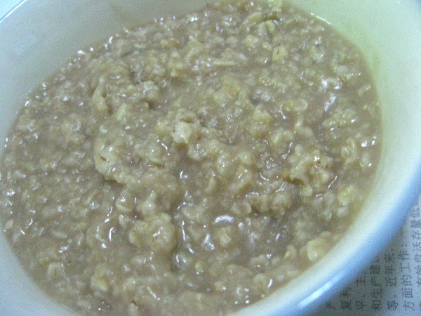 嘻嘻~!因为红豆绿豆汤煮得多了些,碗放不下了,所以留着点底用来煮麦片~!