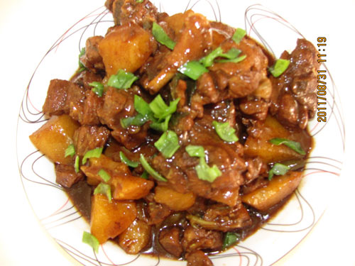 及以下步骤:加入水,开锅后加盐炖20分钟。 加入土豆小火焖熟,加点味精就可出锅了。 盛出后,撒葱末。 把鸭腿剁块,葱姜切快。 锅里放一点油,放入花椒。 然后放入鸭腿块煸炒,把鸭皮上的油充分煸出来。 加入葱.姜.老抽炒匀。 加入水,开锅后加盐炖20分钟。 加入土豆小火焖熟,加点味精就可出锅了。 盛出后,撒葱末。