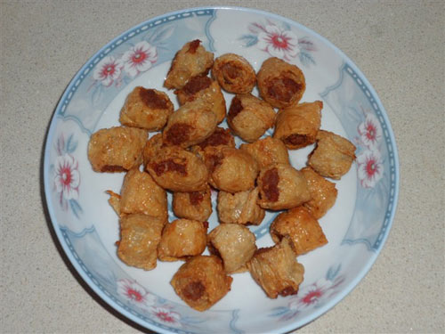 每逢过年,婆婆总要做炸响铃,腐皮脆,猪肉鲜,儿子超爱吃。于是偶便自己学着做,做着做着也就会了,这水平好象也不亚于婆婆的了。