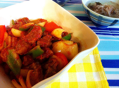 制作美食茄汁牛五方。