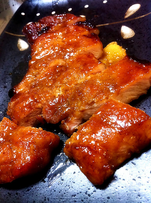 记得以前在国内上学的时候经常和朋友去吃自助餐.自助餐里面那么多的种类我最喜欢的就是腊汁梅肉.那个时候我才10几岁根本不会做饭,总觉得这腊汁梅肉特别神奇,但却从没想要研究过. 前些天本来是想给老公烤黑胡椒猪排吃.可是翻冰箱才发现猪排吃完了,只剩下一块猪里脊肉了.于是我把里脊当猪排烤了,没想到烤出来的里脊居然是我从前吃的腊汁梅肉的味道.我后来上网查了一下,原来所谓的梅肉就是猪里脊. 那天特别开心,误打误撞的居然做出了腊汁梅肉.来日本这么多年,这个味道都快被我淡忘了.人就是这样,有的时候突然触碰的某种味道的时候也会勾起一段那时起的回忆^^^^^