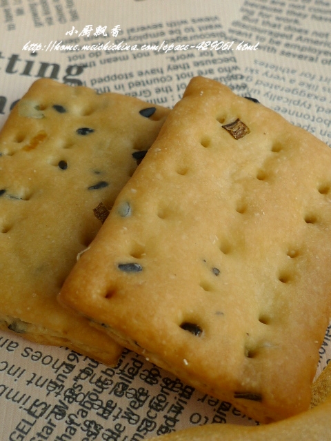 由于我的胃不大好,所以家中常常会准备一些养胃的食品,如馍干、饼干等等。苏打饼干就是我常备之品。在我还不会烘焙的时候,常常会到超市买一些苏打饼干来吃,也尝试了好多个品牌,都不是太合口味。自己会做了,想吃什么口味就做什么口味,原味的、奶香的、椒盐的、香葱的。。。香葱芝麻饼干是我非常喜欢的的一款饼干,酥脆咸香。我还会带一些到单位,惹得那些馋猫姐妹常常偷偷溜到我办公室要着吃。有时大家吃完了,嘴巴也抹干净了,再有人进来还会问:什么东西,这么香!