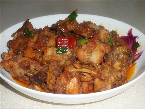 很久以前吃过鸡加,美味一直留在记忆中,那时的鸡绝对是绿绝的食品,不象现在用饲料喂养,所以鸡架显得特别的鲜美.上几天市场上看到鸡架,想起以前的美味,便买来一个试着红烧,虽不如小时个感觉中的那个美味,但也还算不错,放了蛮多调料,很入味.