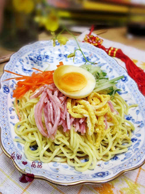 夏天,每次跟朋友出去吃饭,中华拌面都是常出现在桌上的一道菜。 在日本,用小麦粉(面粉)、鸡蛋、盐制成的粗细适中面条被称为——中华面。 中华面最常见的吃饭是,夏天做拌面冬天做勾芡的炒面。 现在怎么说也算是夏末吧,就拌面吧^_^