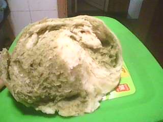 3、把面粉揉成面团,饧20分钟左右,等发酵好后,排空面团空气。