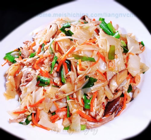 及以下步骤:转动锅,让液体流动均匀。 液体滚动均匀后将有洞的地方填补好,中小火盖上锅盖焖1分钟。 1分钟后揭开锅盖,均匀在表面刷上油。 滚动卷起来拿出。(刚才刷油就是为了滚动的好之后不会粘连在一起) 做好的可以放在旁边稍微凉一下,不要那么烫。 没那么烫的时候就可以切了,按照你喜欢的粗细切条(温度不能太凉,比手暖一些最好)。 切好的贵刁放一边备用。 在锅中放一点油小火烧热。 将虾米放入煸香。 收汁后,将锅抬起倒入盘中或者碗中就ok(不要用筷子挑,或者用勺舀,这样就可以从始自终都不会断)。