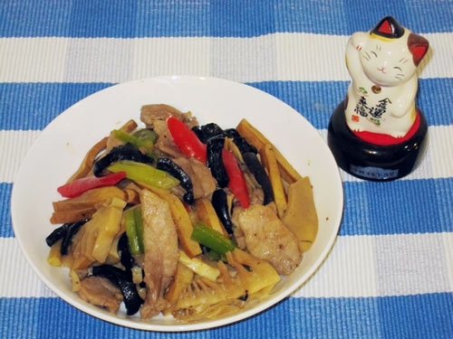 猪肉(300克) / 豆腐干(200克) / 乌元海参(300克) / 水煮笋(500克)