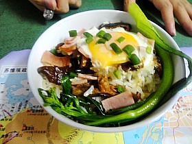 鸡蛋(适量) / 火腿(适量) / 腊肉(适量) / 香米(适量) / 菜心(适量) / 冬菇(适量)