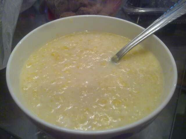 *在这里要注意了,这种玉米粒打出来的粥品和玉米碴熬出来的粥品完全不同,口感上也有很大差异,所以选择“鲜榨”玉米是比较好的选择哦,呵呵*
