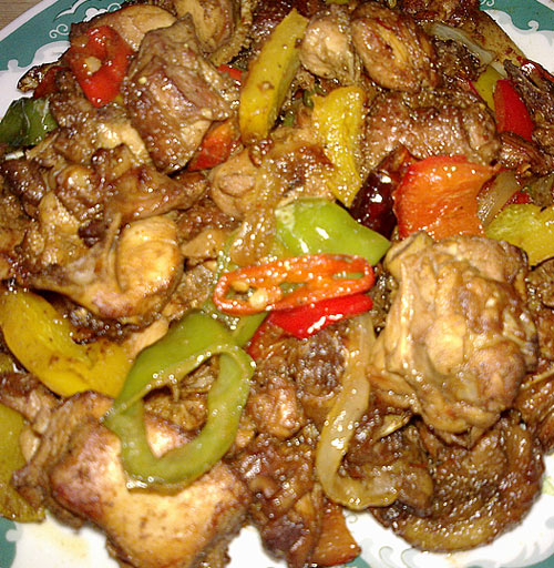 及以下步骤:姜蒜切片,彩椒、辣椒、洋葱切好备用。 将鸡切成小块并用料酒、酱油、淀粉、调味精和盐,拌匀后腌制半个小时。 姜蒜切片,彩椒、辣椒、洋葱切好备用。 将鸡切成小块并用料酒、酱油、淀粉、调味精和盐,拌匀后腌制半个小时。 姜蒜切片,彩椒、辣椒、洋葱切好备用。 将鸡切成小块并用料酒、酱油、淀粉、调味精和盐,拌匀后腌制半个小时。 将腌制好的鸡块放入热的油锅中炸至外表变干成深黄色(此时锅中的烫会很稀),然后把鸡块捞出。 刷好锅,再次放油,待油热后,放入鸡块,炸至金黄捞出。 锅中放油,倒入姜蒜炒出香味后倒入干辣椒和花椒, 翻炒至气味开始呛鼻。 将切好的菜倒入锅中,翻炒片刻再倒入鸡块,倒入辣酱、调味精及酱油翻炒均匀。锅中的油汁被吸收的差不多,辣椒花椒焦香时,倒入孜然粉即可出锅。