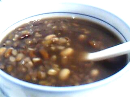 这个粥还是10多年前,我一个中医朋友教给我煮的。这是她专门给我号脉、配药后,告诉我,每天喝这样的粥,配合吃药,我会很快好起来。我乖乖的喝了一年多,也不知道是药物还是这粥,身体还真是好了许多呢。后来……后来我没那么难过了,也就不好好熬粥喝了。现在是偶尔想起来就熬一次,其实现在每天都有吃小杂粮的,在朋友教给我之前还不知道吃小杂粮的事情呢。而且上班很紧张,中午只能吃食堂,也没条件那样吃。哪儿像现在,退休在家赋闲,孩子也不在家,一个人想怎么吃就怎么吃……呵呵,幸福的孤独者。