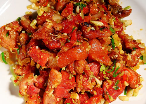 3 蒜苗和蒜头香味不同,所以不要随便省略任何一种调料。