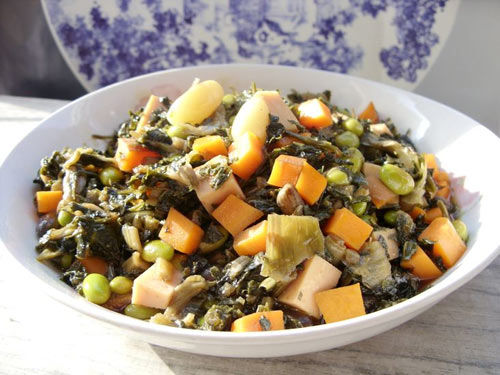 及以下步骤:先到毛豆米下锅翻炒。 豆米变色后,倒入花生米翻炒。 倒入咸菜翻炒,并加入适量的生抽,蚝油,糖。 放入适量的水,以没过菜为准。(中途要多次少量的添加水)盖上锅盖焖煮15分钟左右。 毛豆米变软后,加入胡萝卜和火腿丁,焖2分钟,放入鸡精拌匀,关火装盘。 先到毛豆米下锅翻炒。 豆米变色后,倒入花生米翻炒。 倒入咸菜翻炒,并加入适量的生抽,蚝油,糖。 放入适量的水,以没过菜为准。(中途要多次少量的添加水)盖上锅盖焖煮15分钟左右。 毛豆米变软后,加入胡萝卜和火腿丁,焖2分钟,放入鸡精拌匀,关火装盘。