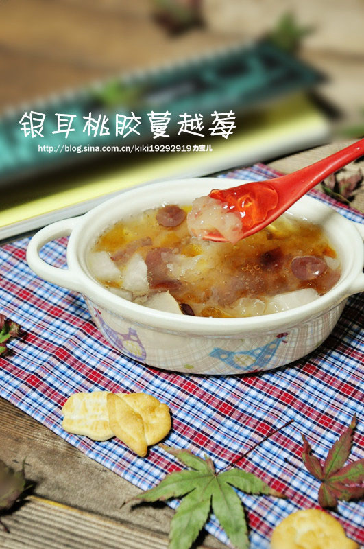 入秋后,不少人会发现声音沙哑、鼻敏感、皮肤干燥、惊厥、头发干燥、便秘等一系列恼人的症状开始时不时骚扰自己一番,这些现象就是典型的中秋燥。燥则润之的原则,秋天应该以养阴清热、润燥止渴、清心安神的食品为主,而银耳类就是当之无愧的滋补佳品之一。今儿,力宝儿给大家推荐的这款糖水,不但润燥解渴还非常的美容养颜!俗话说想要皮肤好,桃胶离不了,同样银耳和梨都是美容佳品!梨,生津润燥;而蔓越莓酸中带甜,美味可口!