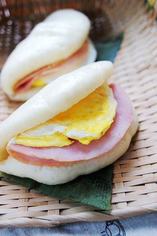 及以下步骤:发酵好的面团压平,用擀面杖擀成圆形面片,对折;用刀压出弧线形成荷叶状,在中心点与弧线之间压出数道线,形成叶脉。 放入蒸笼中静置20分钟,大火蒸制10分钟;关火,3分钟后开盖,出锅。 蒸好的荷叶夹内放入煎蛋、火腿片即可食用。 揉成软面团,包上保鲜膜进行发酵。 发酵至原来的1.5倍到2倍大,呈现蜂窝状。 用手轻轻将面团挤压排除气泡。分成所需的小份。 滚圆再进行15分钟中间发酵。 发酵好的面团压平,用擀面杖擀成圆形面片,对折;用刀压出弧线形成荷叶状,在中心点与弧线之间压出数道线,形成叶脉。 放入蒸笼中静置20分钟,大火蒸制10分钟;关火,3分钟后开盖,出锅。 蒸好的荷叶夹内放入煎蛋、火腿片即可食用。