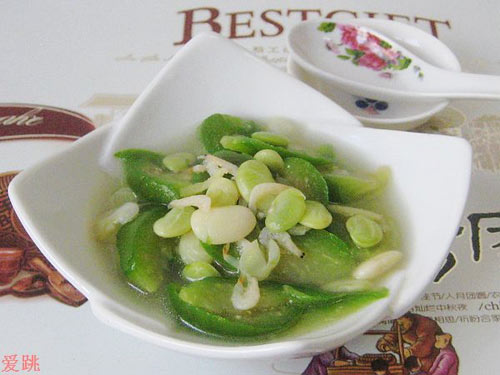 2、锅里油热,放下洋扁豆煸炒,加适量清水大火煮开,中小火滚8分钟。