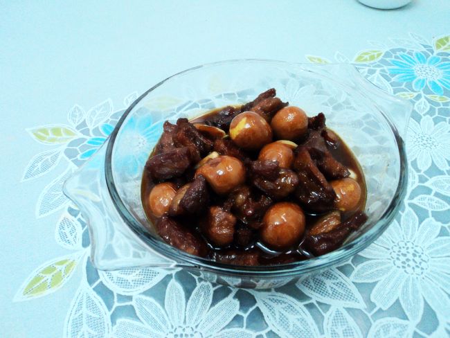 及以下步骤:加少许盐,收汁,出锅 肉洗净,鹌鹑蛋煮熟去壳 切好的肉,放开水中绰一下 肉洗净,鹌鹑蛋煮熟去壳 切好的肉,放开水中绰一下 热锅倒油,放肉翻炒出油 喷料酒,放入冰糖 倒老抽2茶匙翻炒,加适量清水 放入洗净的鹌鹑蛋, 加少许盐,收汁,出锅