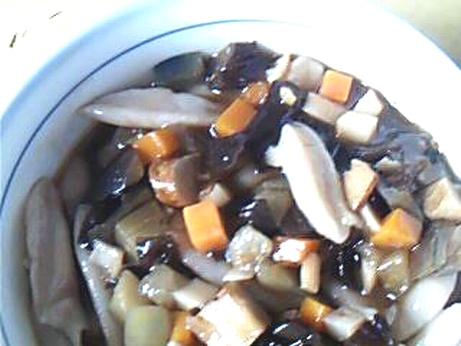 水发木耳(适量) / 胡萝卜(一段) / 藕(一段) / 香干(一块半) / 紫茄子(两只)