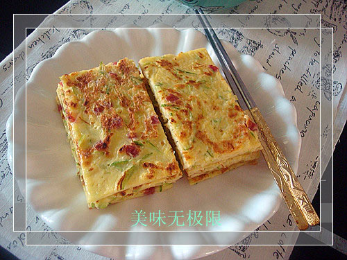 及以下步骤:一面定型后,再煎另一面即可。 原材料如图,腊肠忘记拍了。 南瓜擦丝加入盐腌制5分钟。 原材料如图,腊肠忘记拍了。 南瓜擦丝加入盐腌制5分钟。 打入2个鸡蛋搅匀。 加入面粉搅匀。 加入腊肠丁搅匀。 热锅加一点点油,倒入适量面糊。 一面定型后,再煎另一面即可。