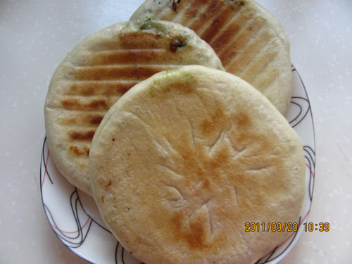 及以下步骤:面团揪成小剂子,擀成圆皮。 包入调好的馅。 成包子状。 用手按一下,饼就做好了。 电饼铛擦点油,放入饼。 烙2分钟就熟了。 热乎乎的饼出来了。 开吃.... 热乎乎的饼出来了。 开吃....