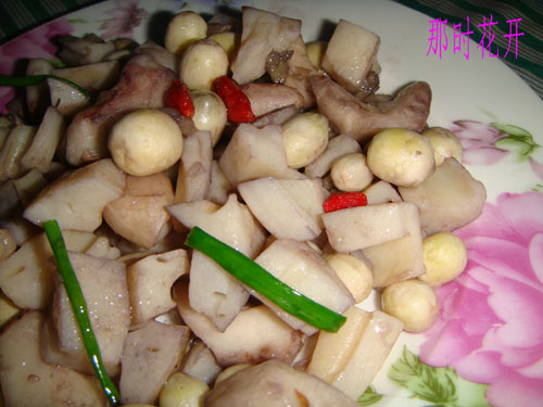及以下步骤:边炒边点少许清水,用少许盐调味。 加入葱段枸杞,淋少许水淀粉翻炒均匀即可起锅。 准备的食材。 藕洗净切丁,菱角莲子去皮,姜切末,葱切段。 锅里水烧开,把藕莲子菱角淖一下水。 捞出沥水。 热油爆香姜末。 倒入三宝大火翻炒。 边炒边点少许清水,用少许盐调味。 加入葱段枸杞,淋少许水淀粉翻炒均匀即可起锅。